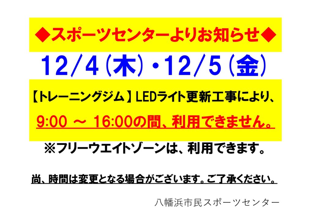 ●メイン・サブ・ジム・ランニングコース …… 月~日 9:00~21:30