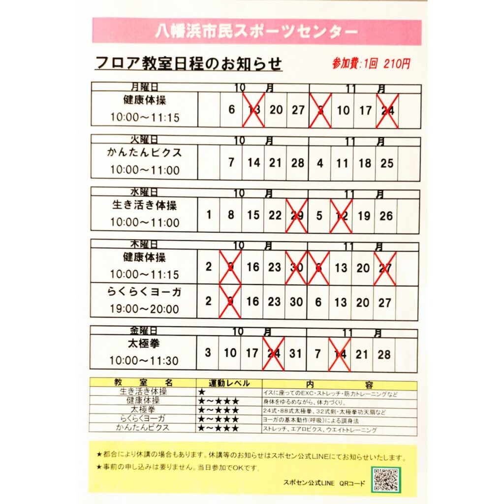 火曜日:かんたんビクス 10:00~11:00